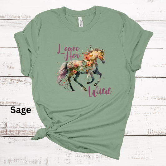 Leave Her Wild Floral Horse Short Sleeve Tee Shirt