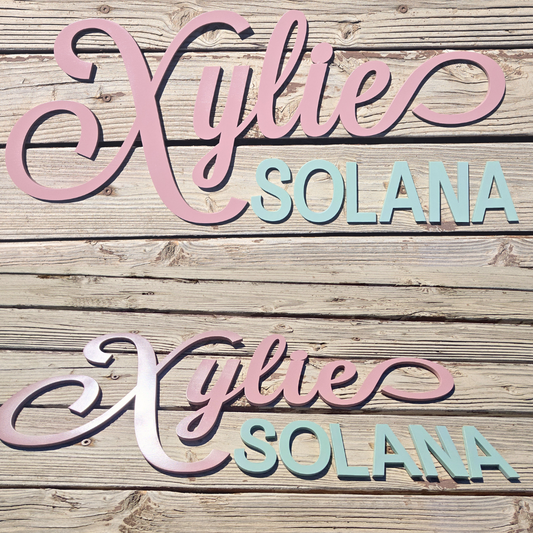 Double Name Custom Wood Sign – Two-Layer Laser Cut | Painted or Stained