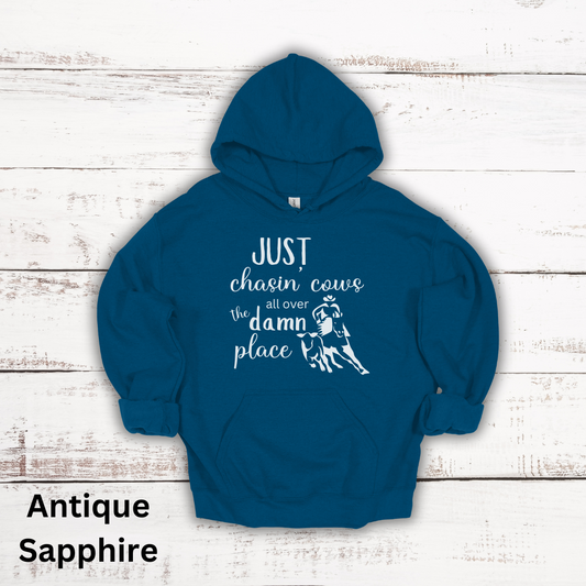 Just Chasin Cows All Over The Place Hooded Sweatshirt