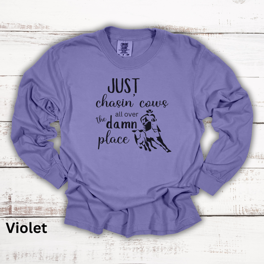 Just Chasin Cows All Over The Place Long Sleeve Tee