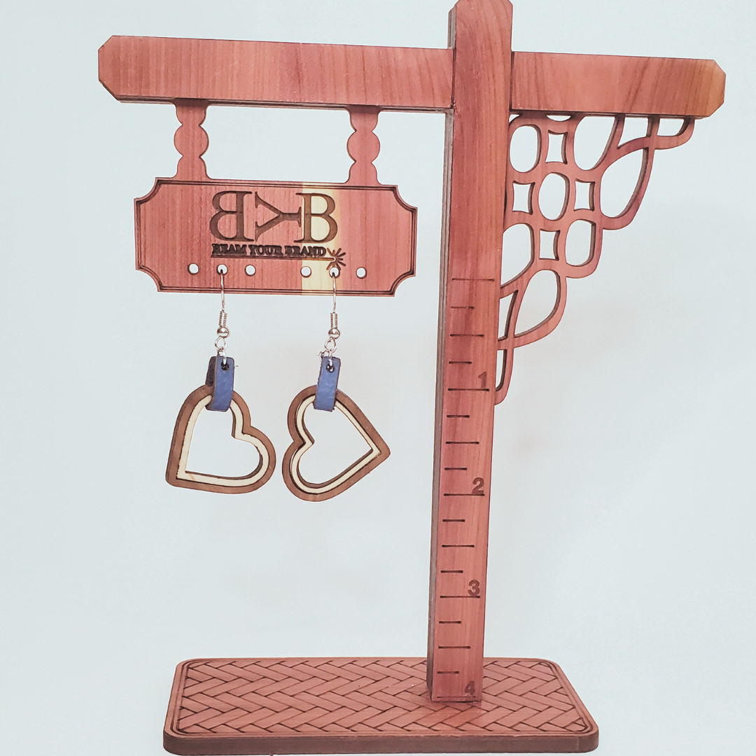 These adorable earrings are perfect for your night out on the town! Laser cut hearts are made of veneer walnut and birch with an mdf core and wrapped with a touch of genuine leather. The hooks are nickel free stainless steel and allow the hearts to swing freely from your ears.