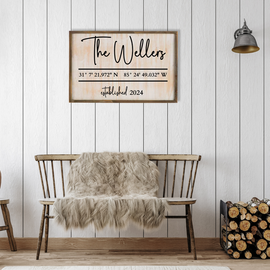 Add a personal touch to your home with a beautifully crafted custom sign featuring your family name and the unique coordinates of your address. This meaningful piece combines style and sentiment, making it a perfect addition to your entryway, living space, or even as a thoughtful gift for loved ones. Celebrate your family's roots with a sign that’s as special as the place you call home!