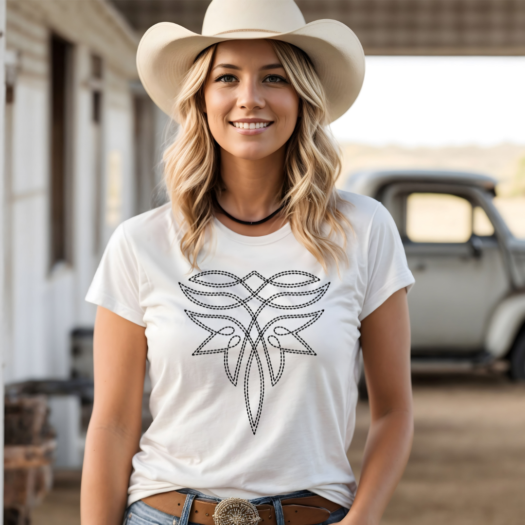 Wear your western on your shirt with this quintessential boot stitch graphic. *graphic is printed on the shirt, not actually stitched.