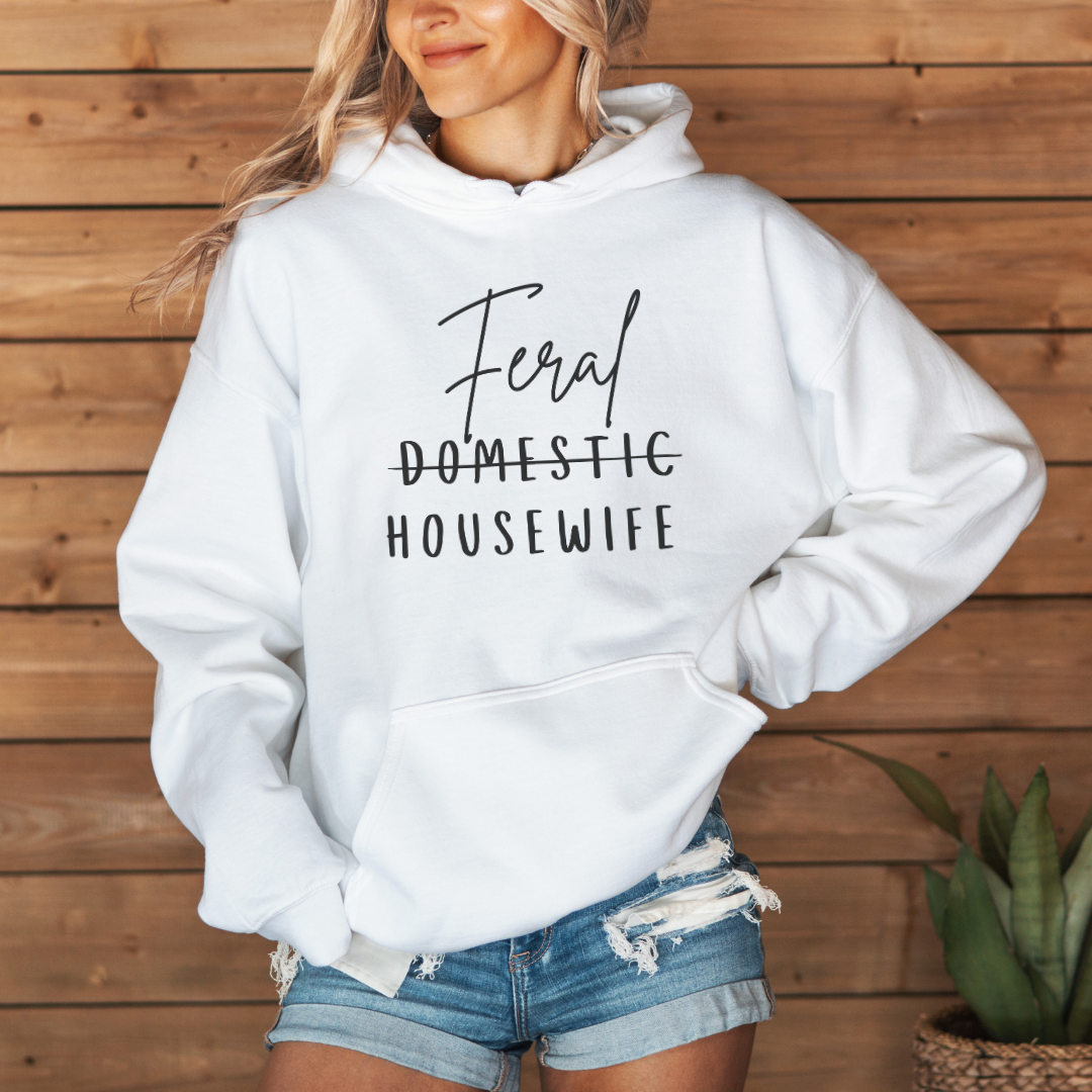 Raise your hand if you know you aren't a domestic housewife! The Feral Housewife t-shirt is the perfect shirt for all of us feral women who would rather be doing anything but housework. Give it as a gift to your favorite feral woman and get one for you too!