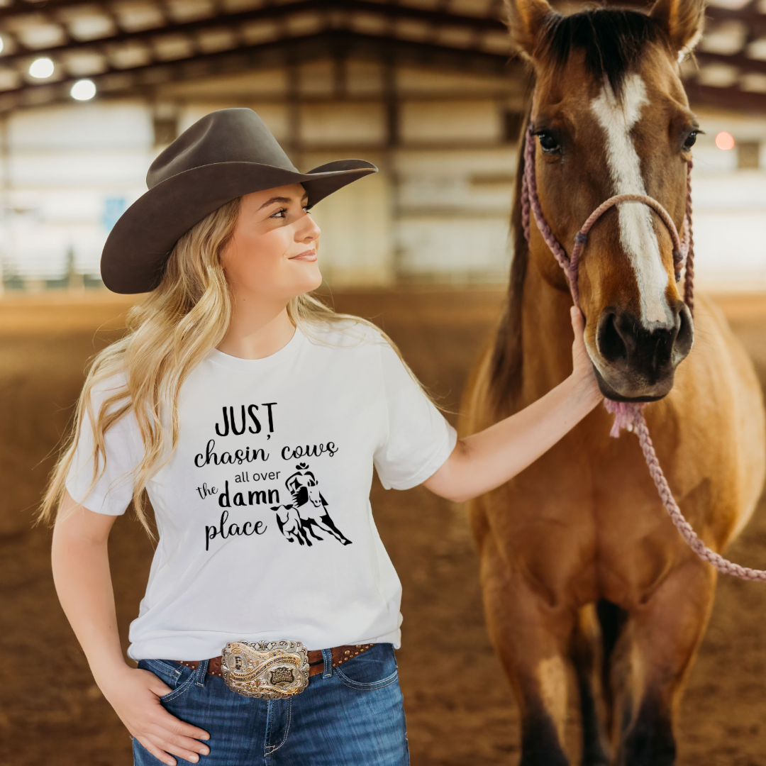 Just Chasin Cows All Over The Place Short Sleeve Tee