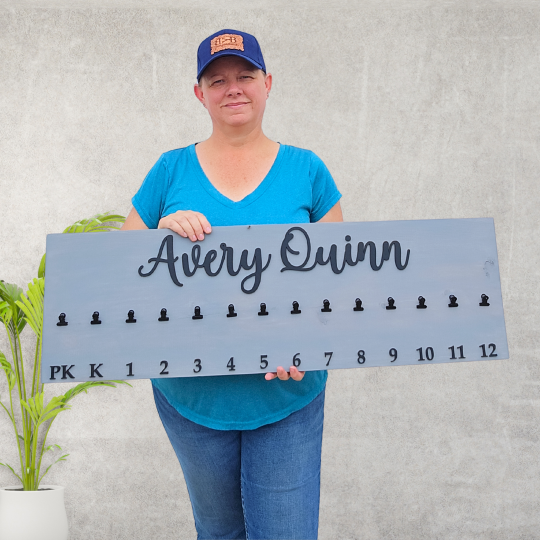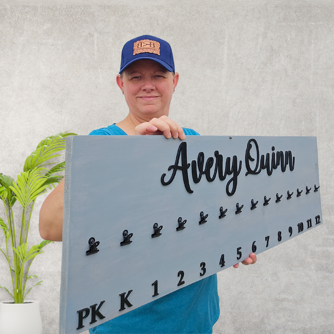 Personalized School Photo Board – 11x36" Wooden Keepsake | Farmhouse Style