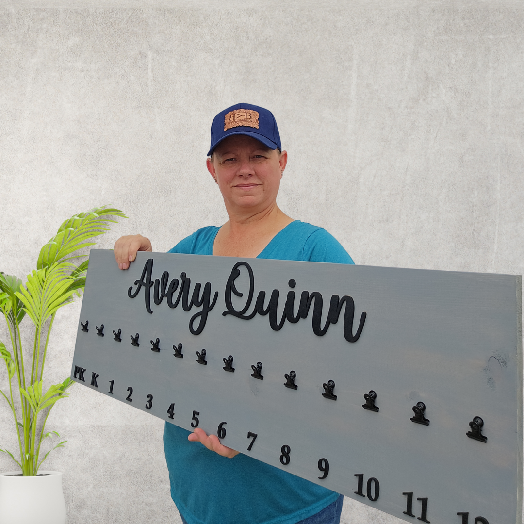 Celebrate your child's journey from Pre-K to 12th grade with this custom-made school photo board. Designed in a classic farmhouse style and built from solid pine, this 11x36" board is the perfect way to display school photos year after year.
