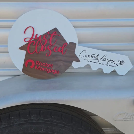 Stand out in every closing photo with a custom laser-cut wood key sign, designed just for real estate professionals. These oversized photo props are fully customizable with your name, branding, and message – whether you want it to say Sold, Just Listed, Welcome Home, or something totally unique.