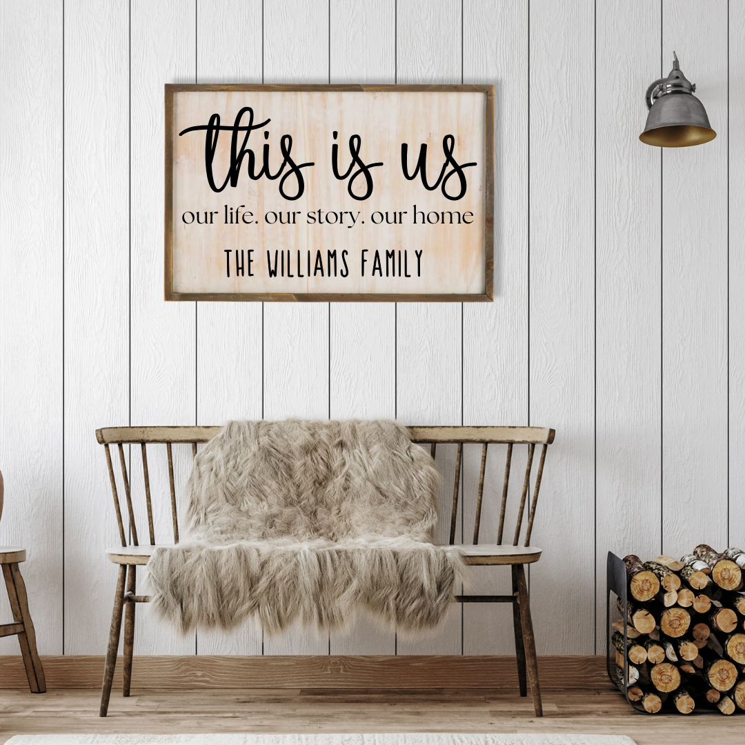 A Heartfelt Declaration: Our Chic Framed "This Is Us" Wooden Sign