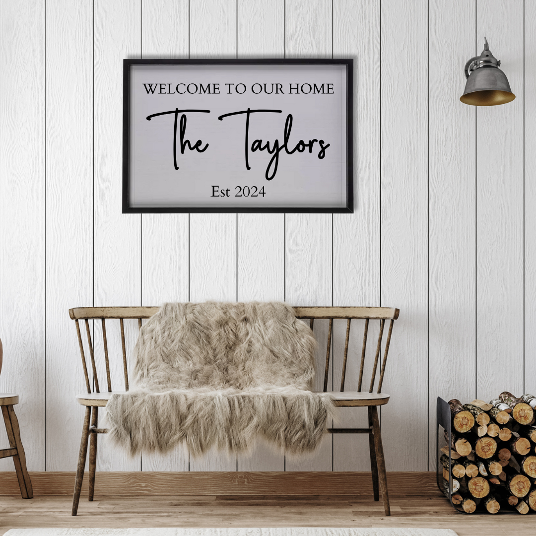 Welcome guests in style with our personalized 'Welcome To Our Home' sign! Beautifully crafted and customizable, it's the perfect touch for your entryway or gift for loved ones. Perfect for the new home buyer or that beautiful newlywed couple.