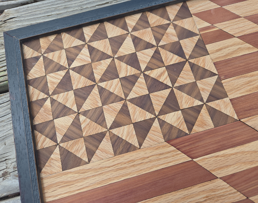 Each piece is crafted from oak, cedar, and walnut veneered plywood, creating natural contrast and rich wood grain variation that makes every flag completely unique. The mix of tones adds dimension while the clean frame gives it a finished, ready-to-display look.